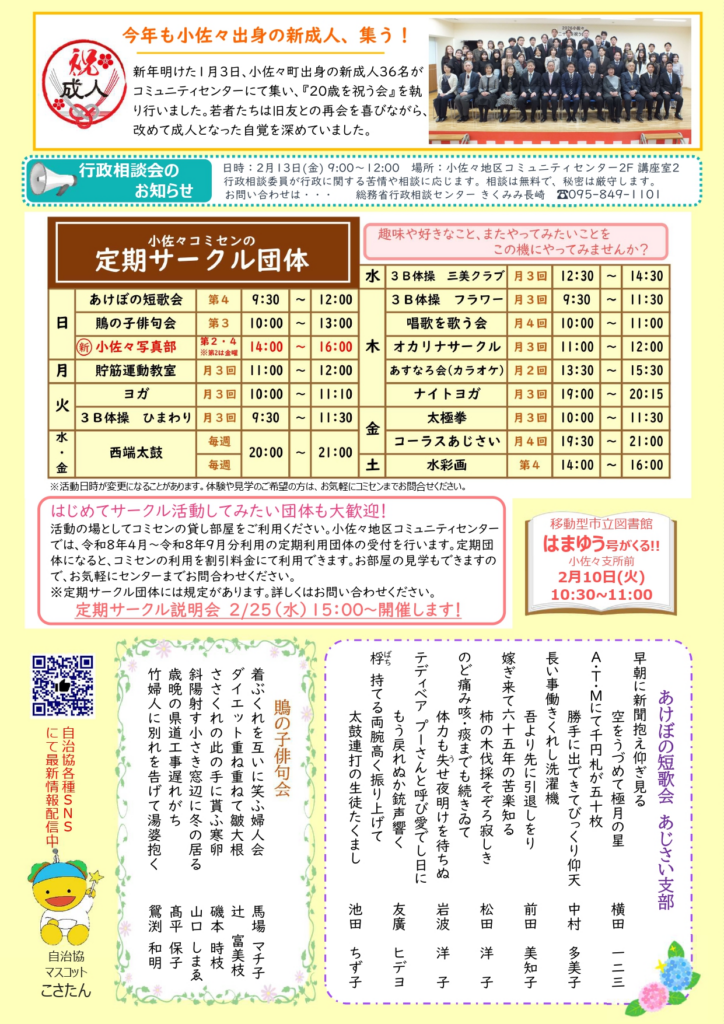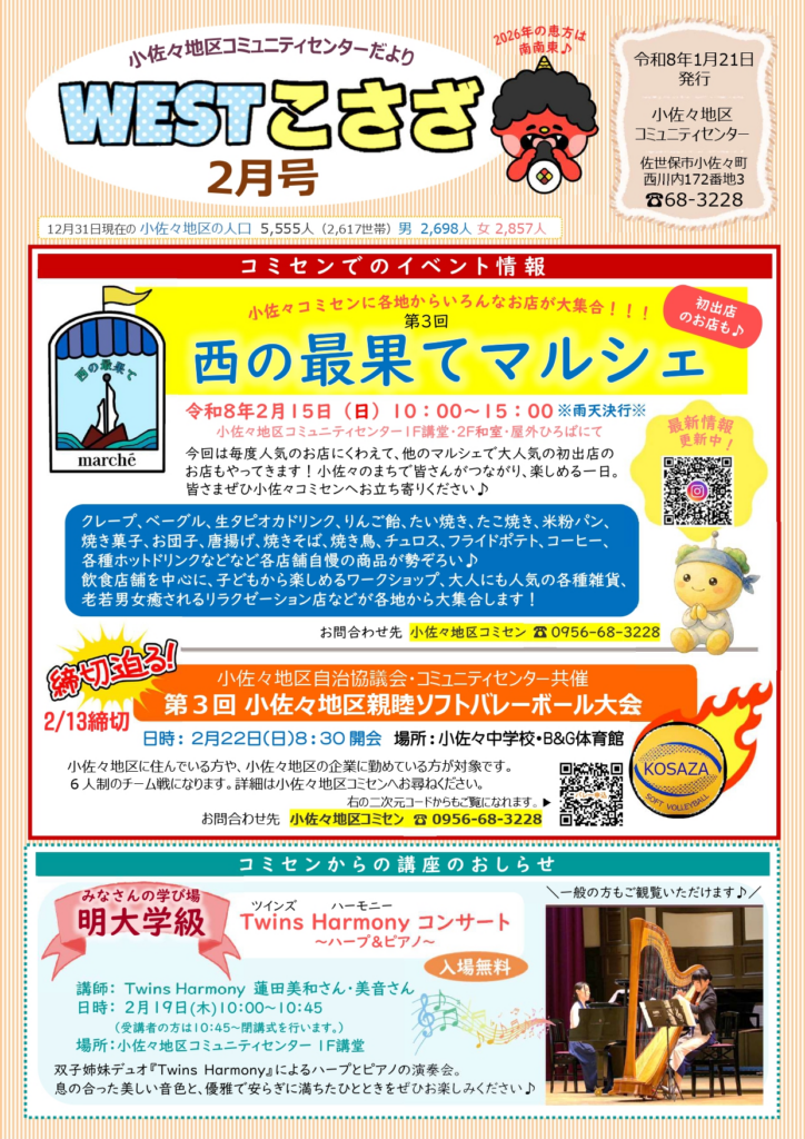 コミセンだより2月号を発行しました 2026 1/22 コミセンだより コミセンだより よかったらシェアしてね! URLをコピーしました! URLをコピーしました! 関連記事 コミセンだより4月号を発行しました! コミセンだより3月号を発行しました! コミセンだより1月号発行しました コミセンだより12月号を発行しました コミセンだより11月号を発行しました コミセンだより10月号を発行しました コミセンだより9月号を発行しました コミセンだより8月号を発行しました