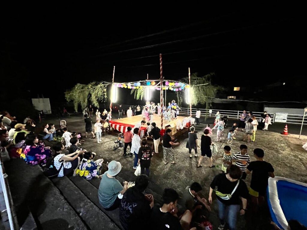 8月14日、港町地区公民館で夏まつりが開催され、地域の子どもから高齢者まで多くの人でにぎわいました。港町地区会(会長:野間健司)が主催したもので、コロナ禍の令和2年から4年を除き、毎年夏の恒例行事となっています。盆踊りをはじめ、魚釣りゲームやビンゴゲームなど訪れた人たちはお盆の夜を満喫していました。