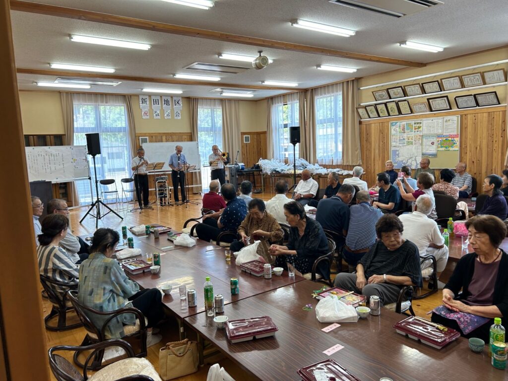 また新田公民館では70歳以上の高齢者30人が出席、黒石地区のバンド「スマイル」による演奏や「コーラスあじさい」による合唱に出席者から盛大な拍手がおくられていました。。