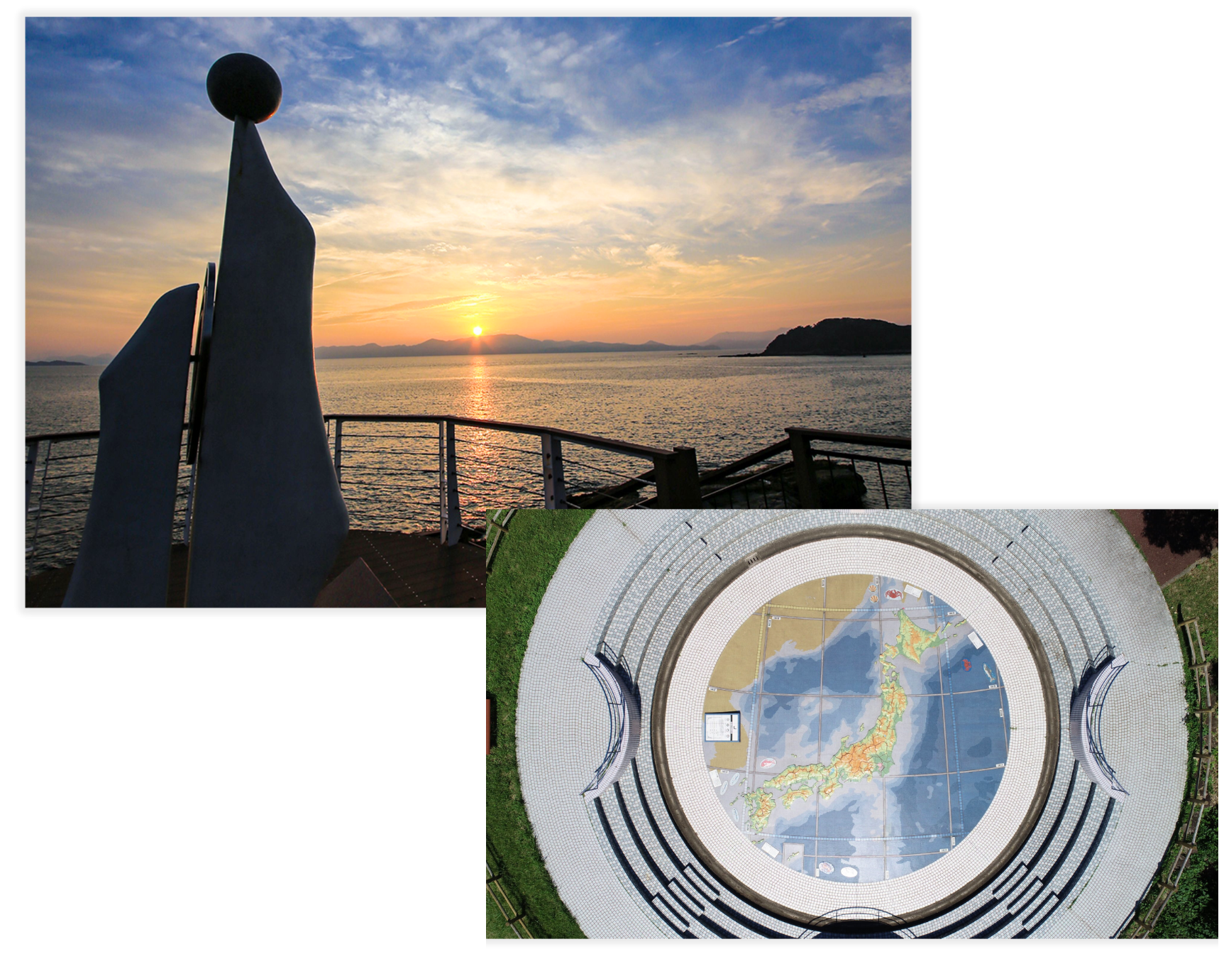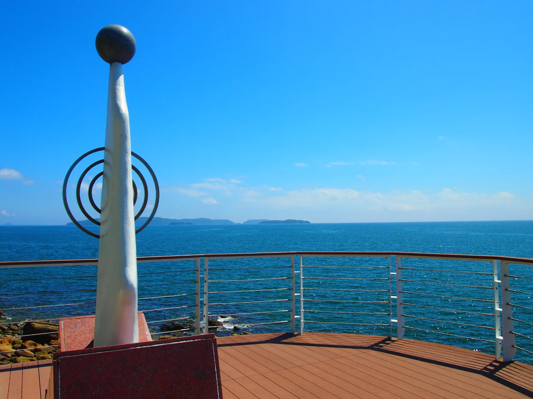 整備された公園は、海風を感じながら散策できる癒やしのスポットとして定着しています。また「四極交流広場」では大きな日本地図を目の前に四極協定の歴史を感じることができます。