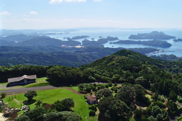 眼下に西海国立公園の素晴らしい風景が広がります。標高約330mから見下ろす島々の景観は、佐世保市内でも屈指の美しさです。