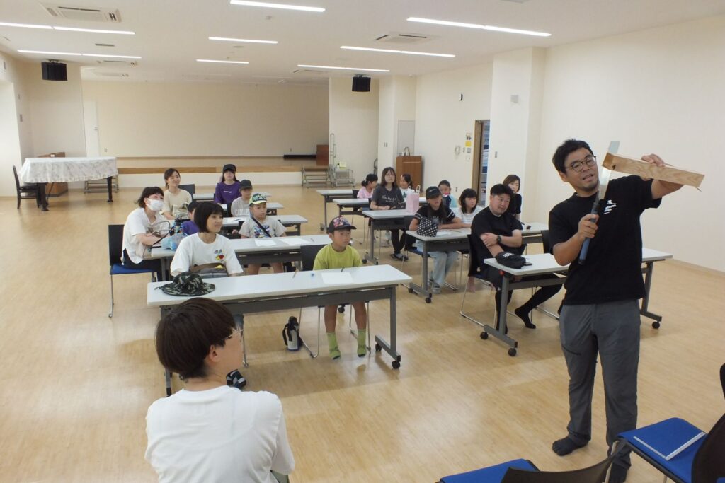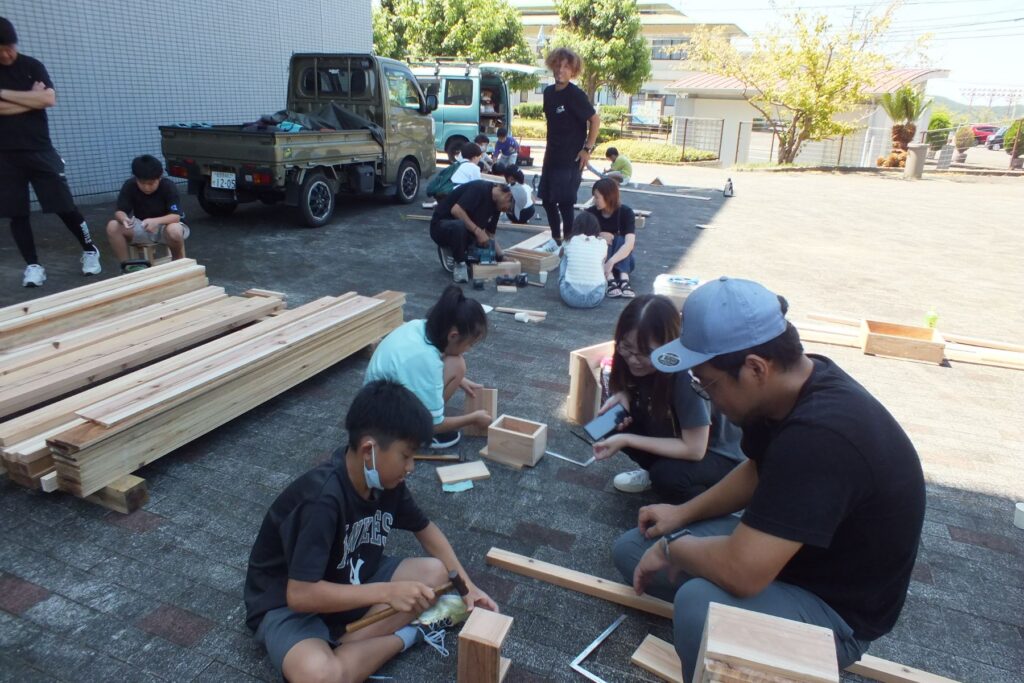 8月11日、小佐々地区コミュニティセンターでヤマモトデザインの山本隆三さんら小佐々町内在住の5人の指導者を迎え、環境に配慮した木工教室を開催しました。ものづくりの楽しさを実感してもらおうと同コミュニティセンターが主催したもので今回で3回目、5年ぶりの開催となりました。参加したのは小学生12人、子どもたちは、のこぎりや金づちなどの道具を使って、思い思いに小物入れやスマホ立てを作っていました。