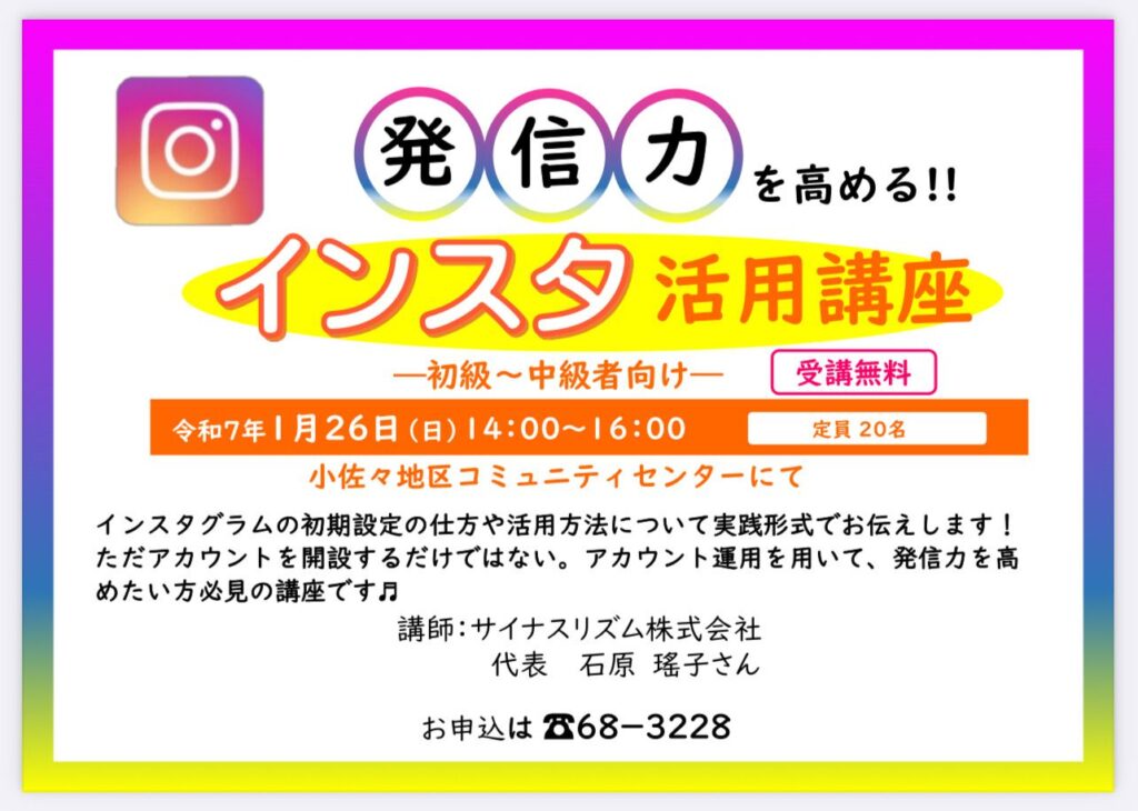 1月以降の小佐々コミセンでの講座情報をご案内します!今年もより皆さまのためになる講座を企画・運営していきたいと思いますので、皆様ご参加お待ちしております♪