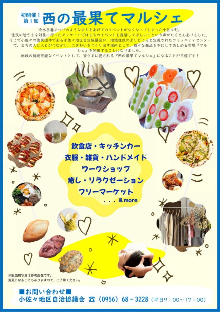西の最果てのまち・小佐々で、人と人とのつながりづくり、お店と人とのにぎわいづくりを目的とした『西の最果てマルシェ』を開催します!